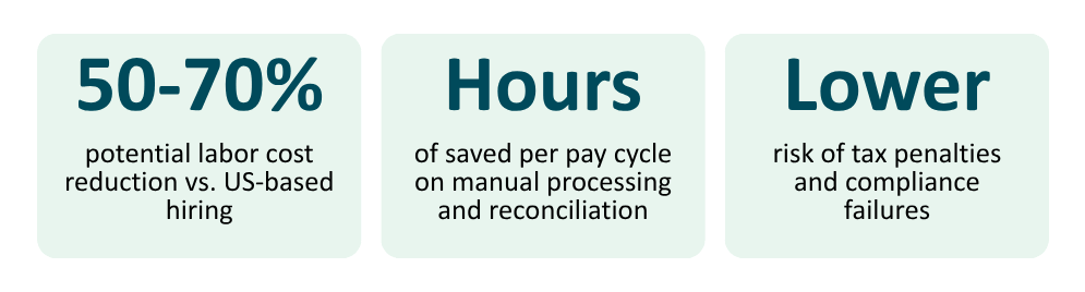 Running payroll internally isn’t free. Factor in the time cost of whoever manages it, payroll software subscriptions, training, and the cost of errors. For many businesses, outsourcing to a specialized provider is cheaper than the status quo. And unlike internal staff, outsourced payroll costs scale with your actual needs.